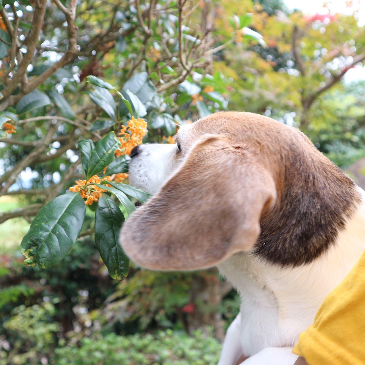 庭の金木犀は、昨年は咲きませんでした。庭の木々の剪定をお願いした時期が悪かったのか、天候なのか、咲かない年もあるのか、わからないのですが…今年はどうかなと思ってたら、少しずつ咲き始めてきましたよ♪沢山咲いてきたらロコと金木犀の写真を撮れるといいな♡