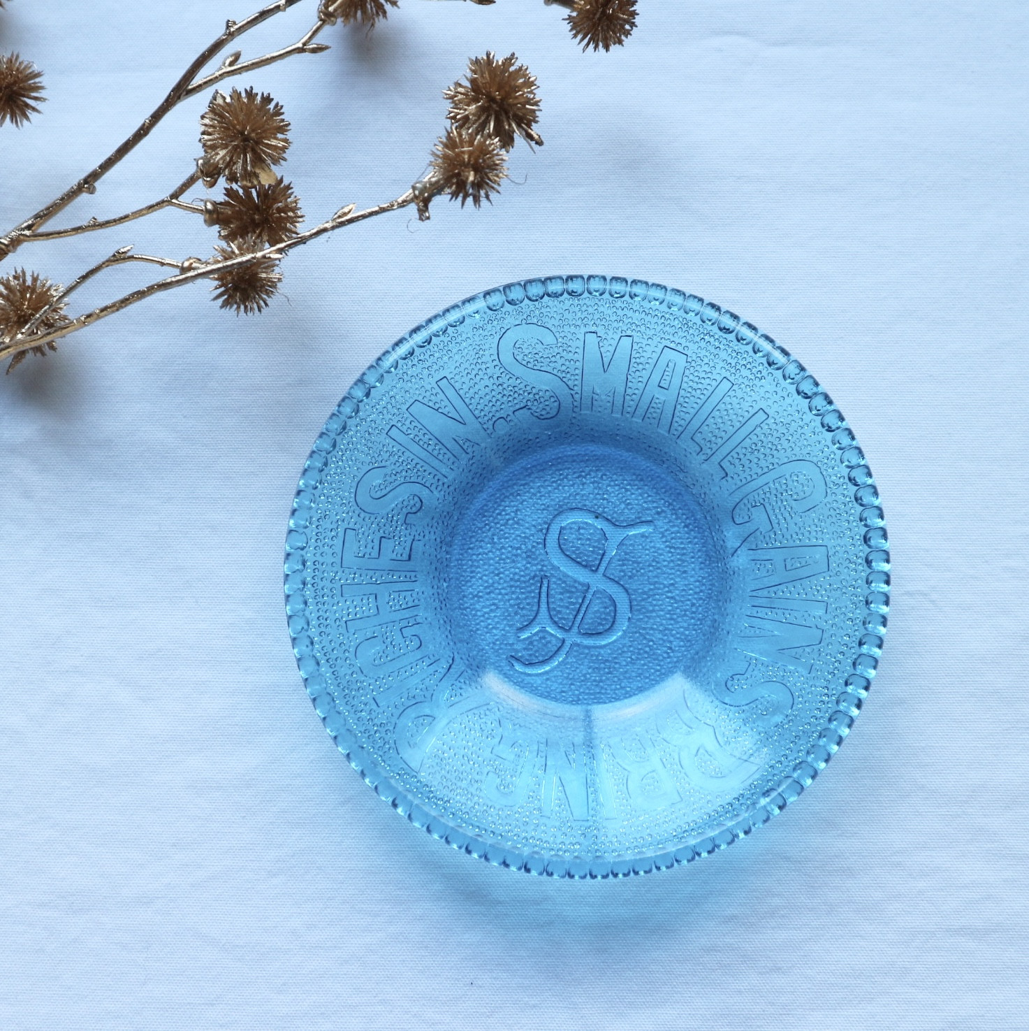 格言がプレスされたガラス皿でした。