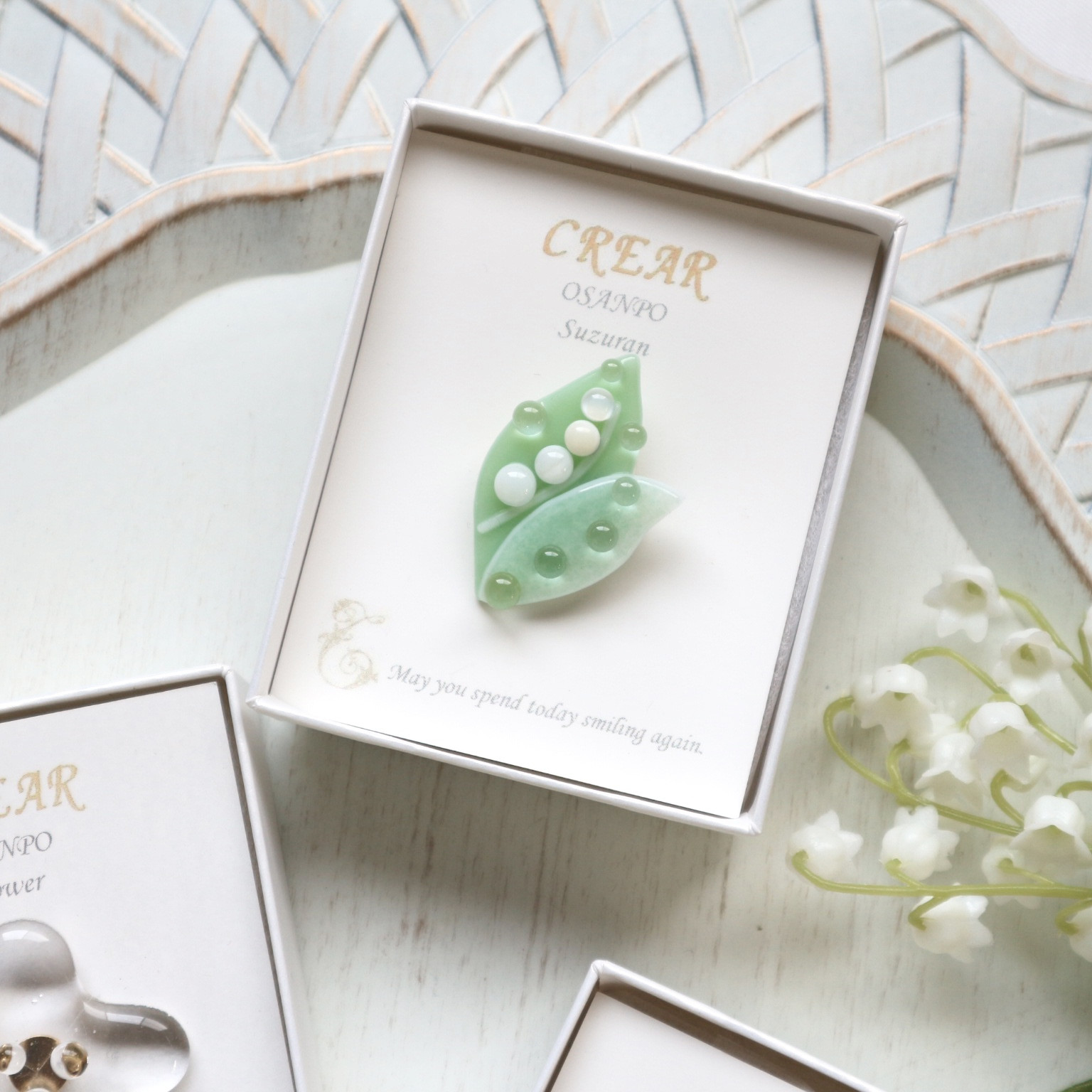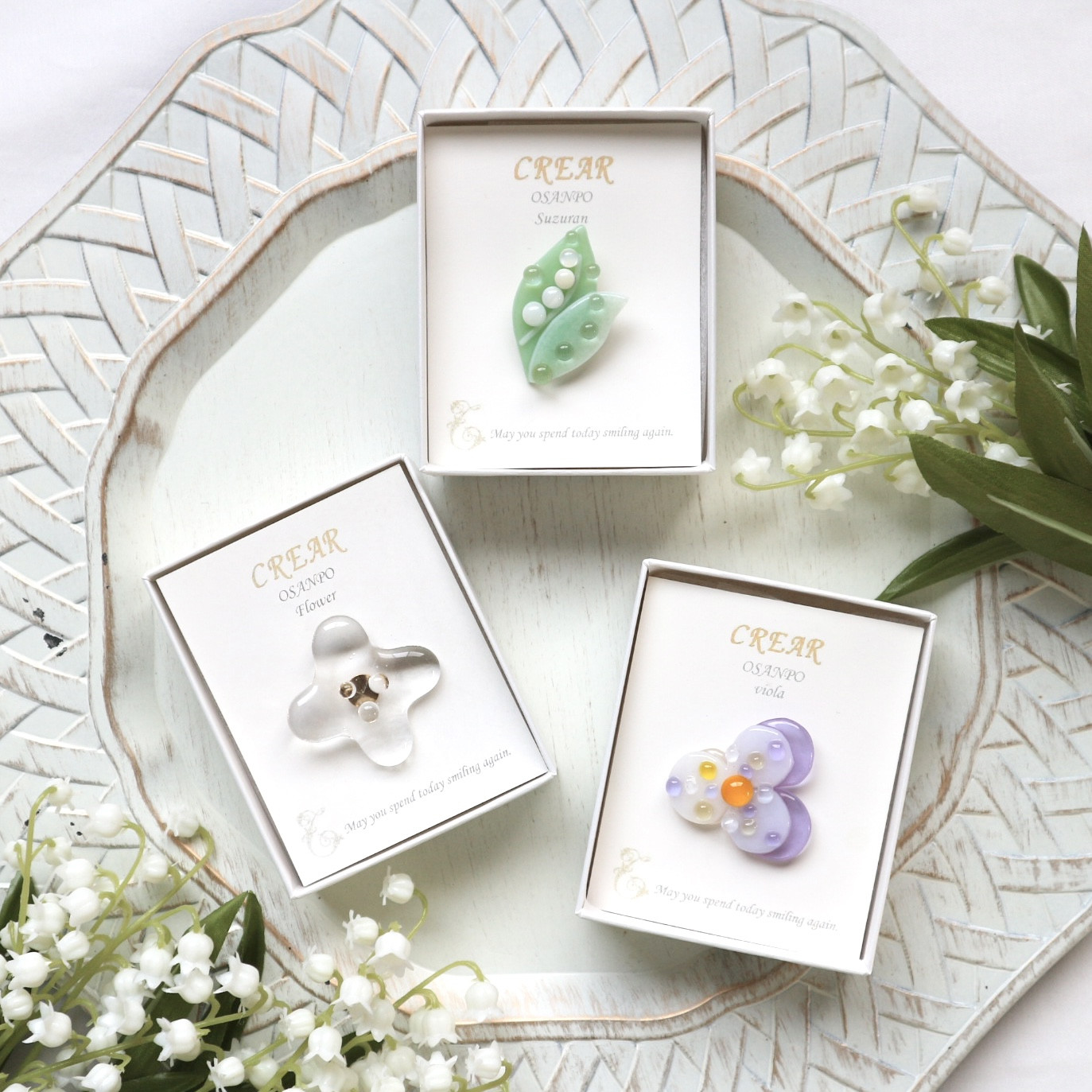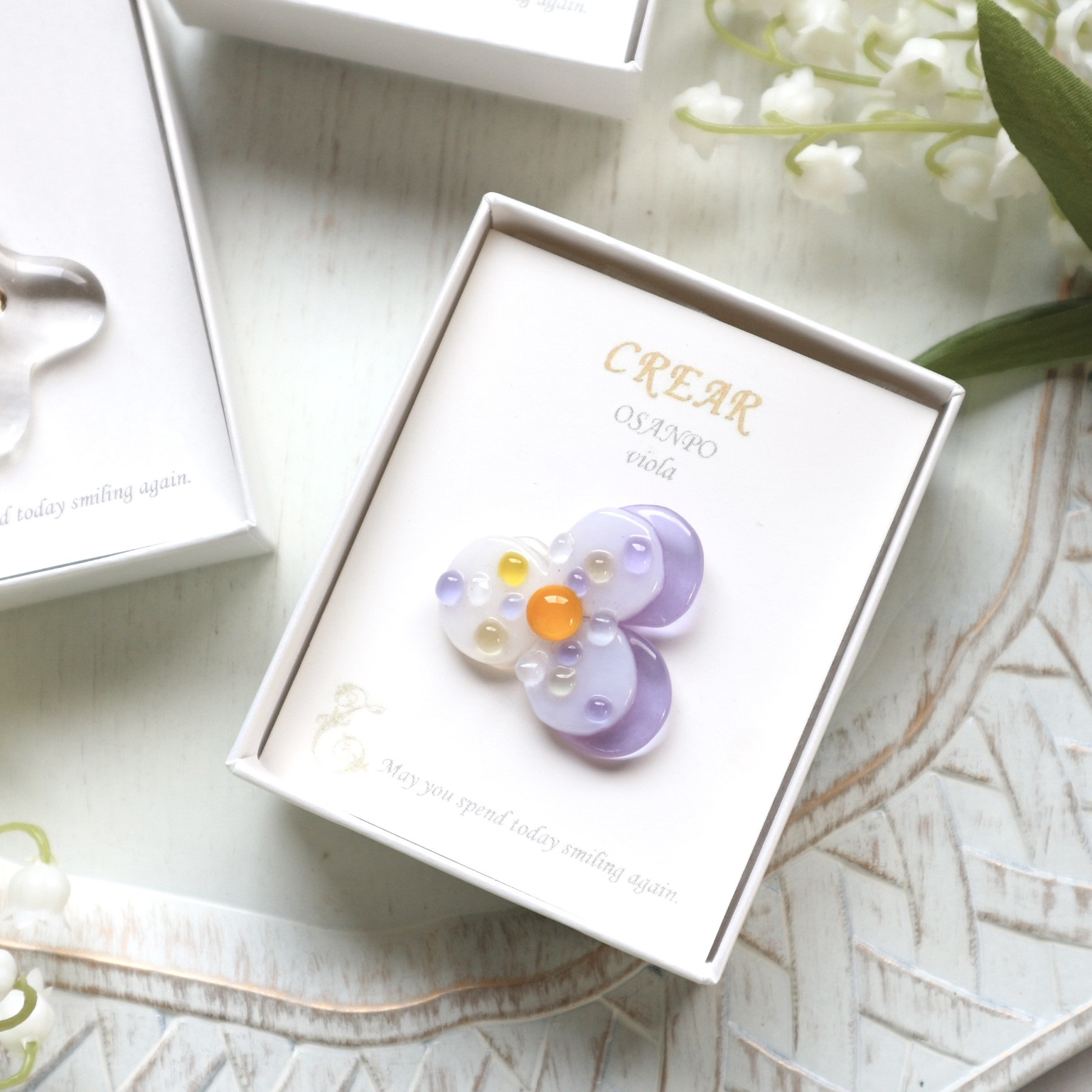 贈りものに春らしいガラスブローチを選んでくださいました✨贈られる方それぞれに想いをこめて。。