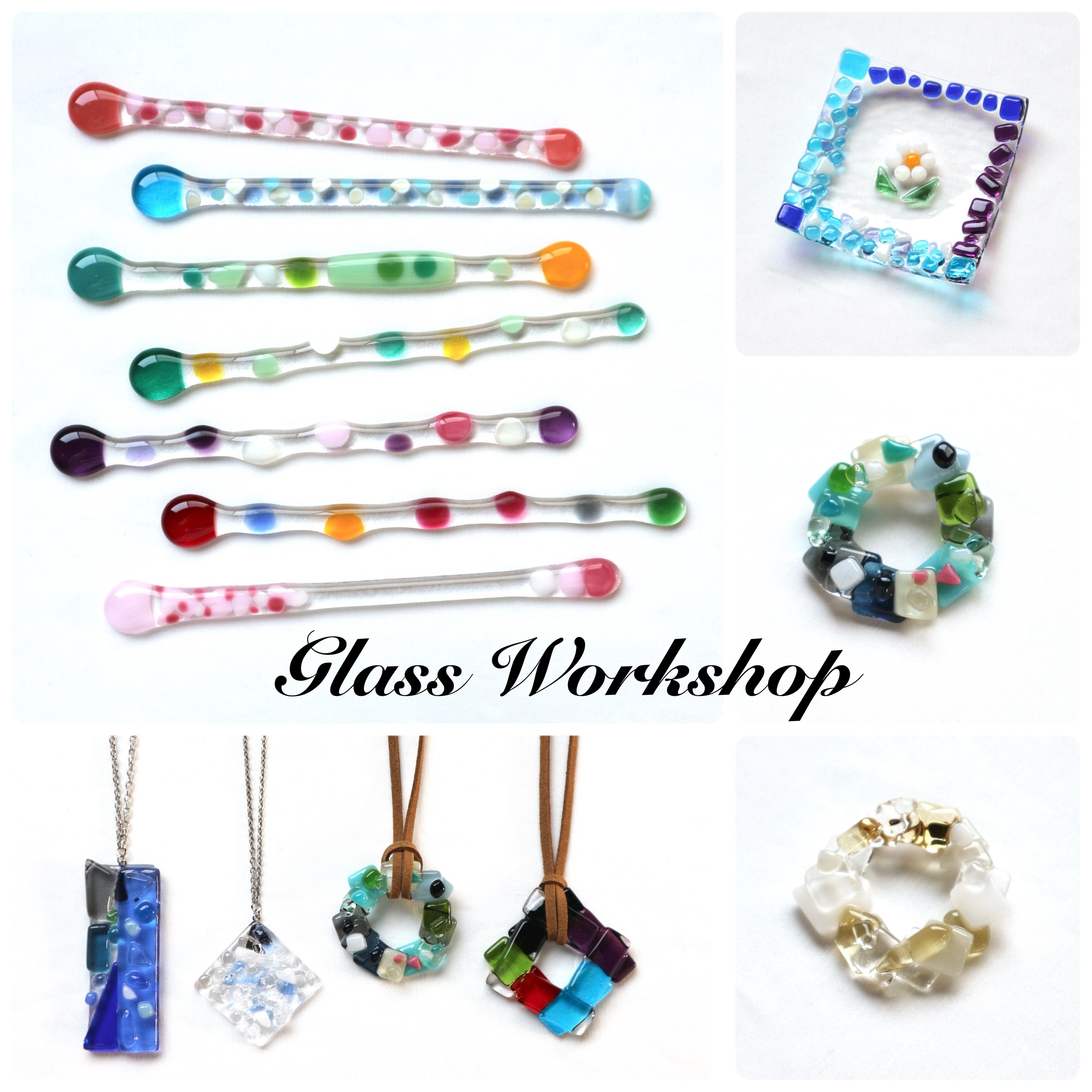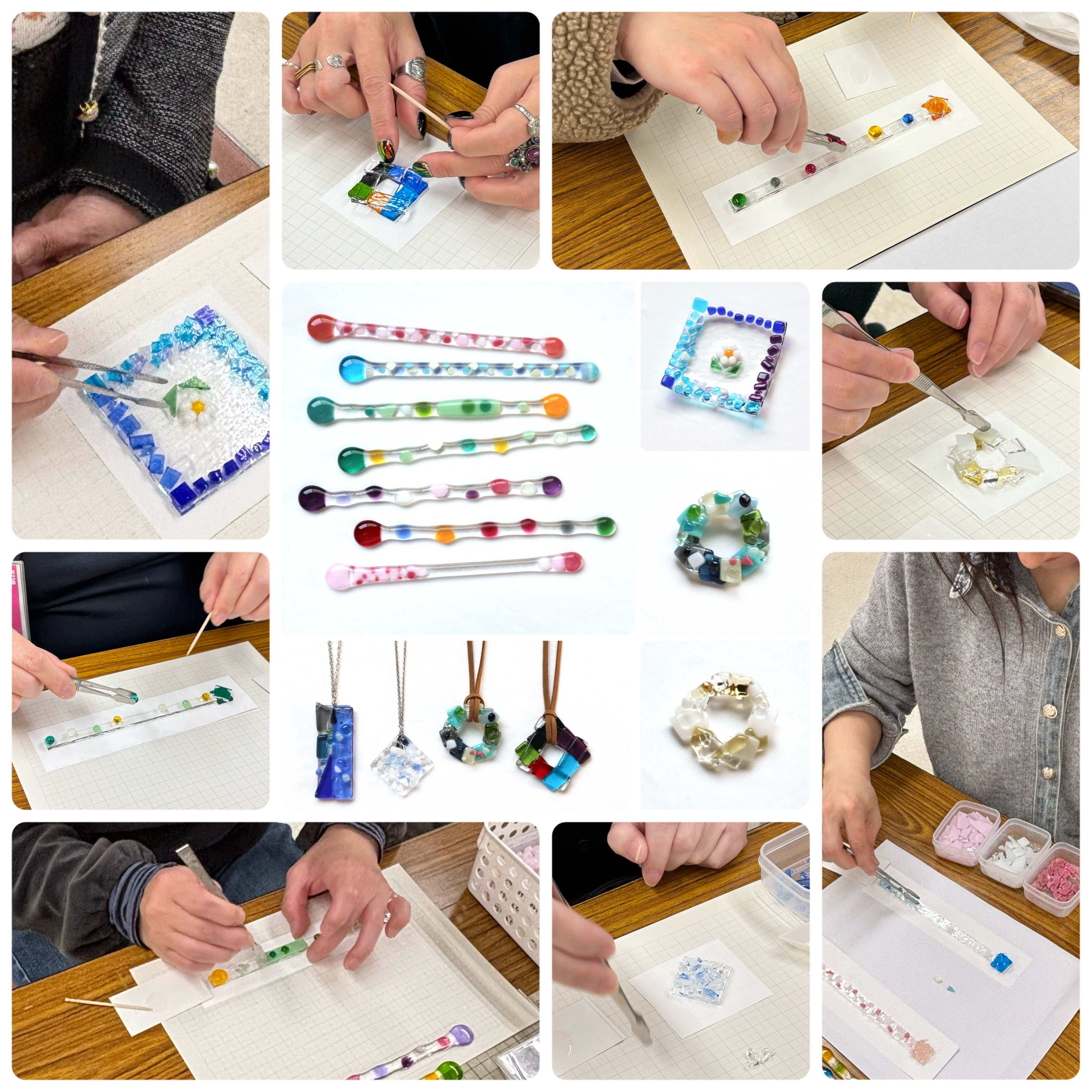 先月のガラスワークショップにお越しいただきました皆さんの作品紹介です✨マドラー、ブローチ、ネックレスなど素敵に出来上がりました!