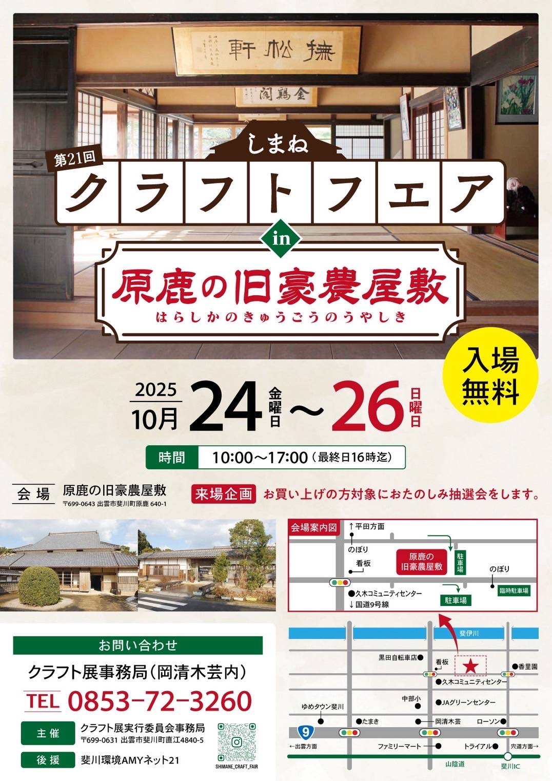 10/24~26 「しまねクラフトフェア」 原鹿の旧豪農屋敷にて開催♪